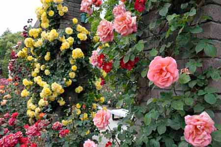 緑化促進に力を入れる伊丹市はバラの栽培でも有名で、起伏のある南欧風のこの公園には大輪からミニにいたるまで、世界の品種250種、約一万本が華麗に植えられている。四季咲き種が大半のため、秋まで観賞出来るが、春花が今満開を迎えている。入園無料!